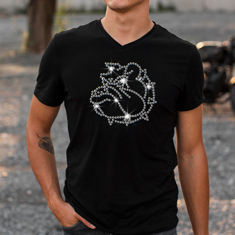 Sequin transfer is one of our hotfix transfers solutions.It's a custom ready to press heat transfer made of hot fix style spangle.