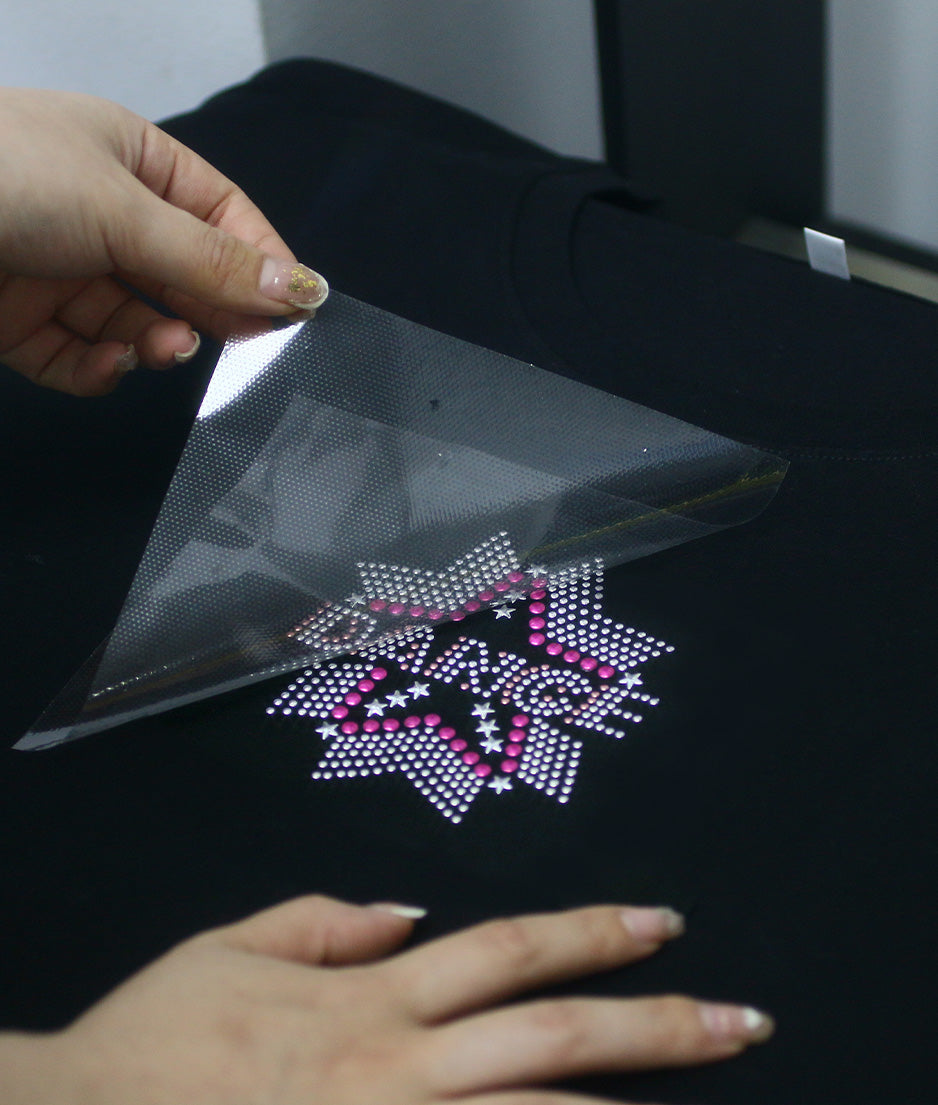 HYI provides high-quality materials to customize your nail head transfer. These high-temperature-resistant materials have imported hot-melt adhesive on the back to ensure easy pressing, washability and durability. The Korean quality silicone hot fix transfer tape ensures just the right viscosity and not easy to shift, and no residual glue is left on the surface of the fabric after you heat press it.
