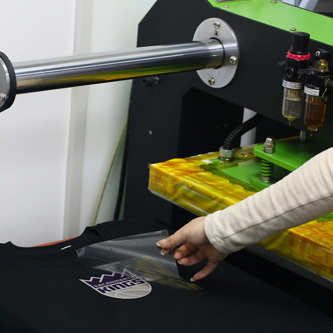 Everything is ready to press transfer. You only need to purchase the corresponding quantity of blanks as needed then heat transfer them. You do not have a large inventory accumulation. Doesn’t require a lot of storage space.