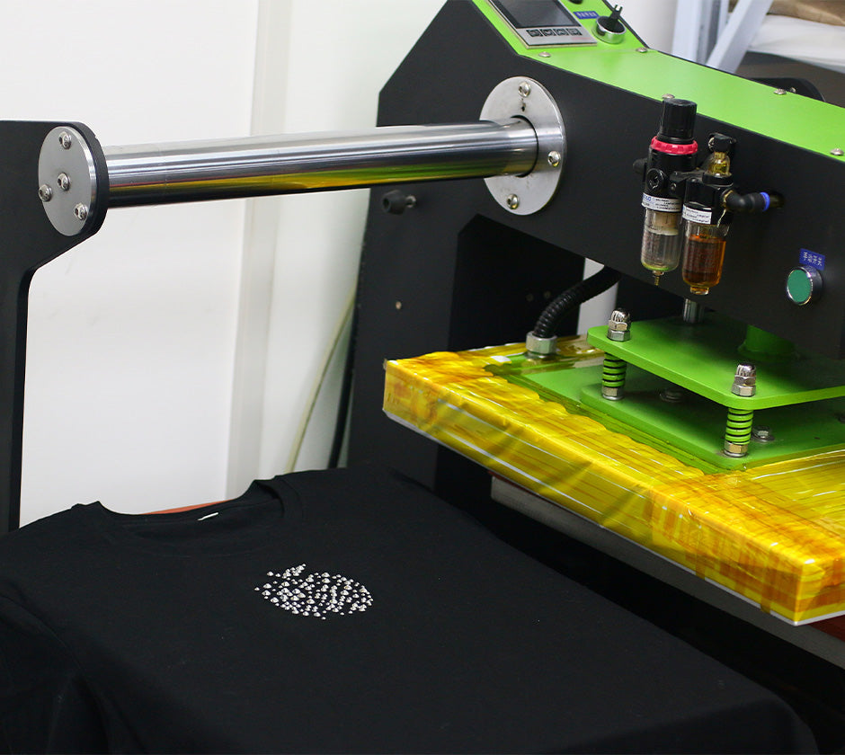 Hotfix transfers is one of our heat transfer solutions .It's a custom ready to press heat transfer made of hot fix style matrials.