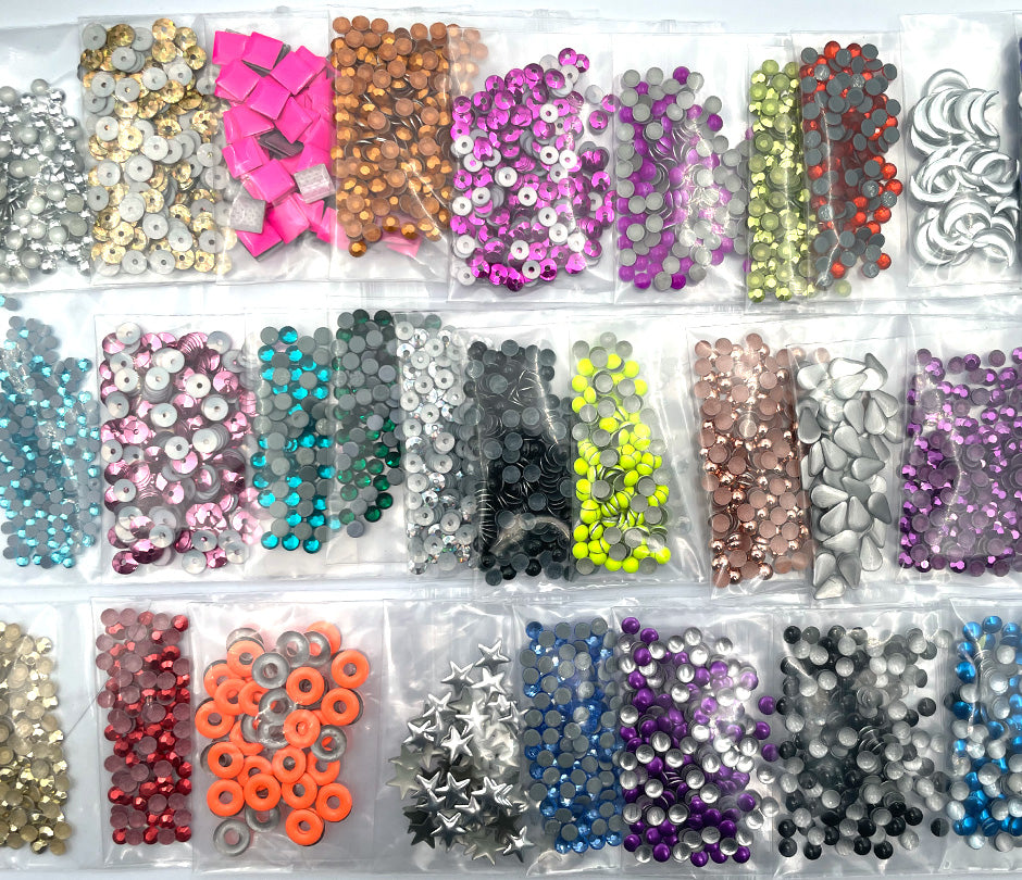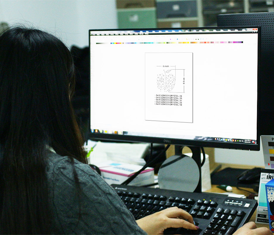 HYI provides a variety of popular hot fix style materials such as rhinestone, rhinestud, sequin , nail head, dome stud, etc, and provide you with designs based on your artwork or ideas, choosing the best materials to highlight your logo, design, name or numbers, then modling and crafting, finally transferring the pattern onto our premium hot fix transfer tape, and set everything up for your.
