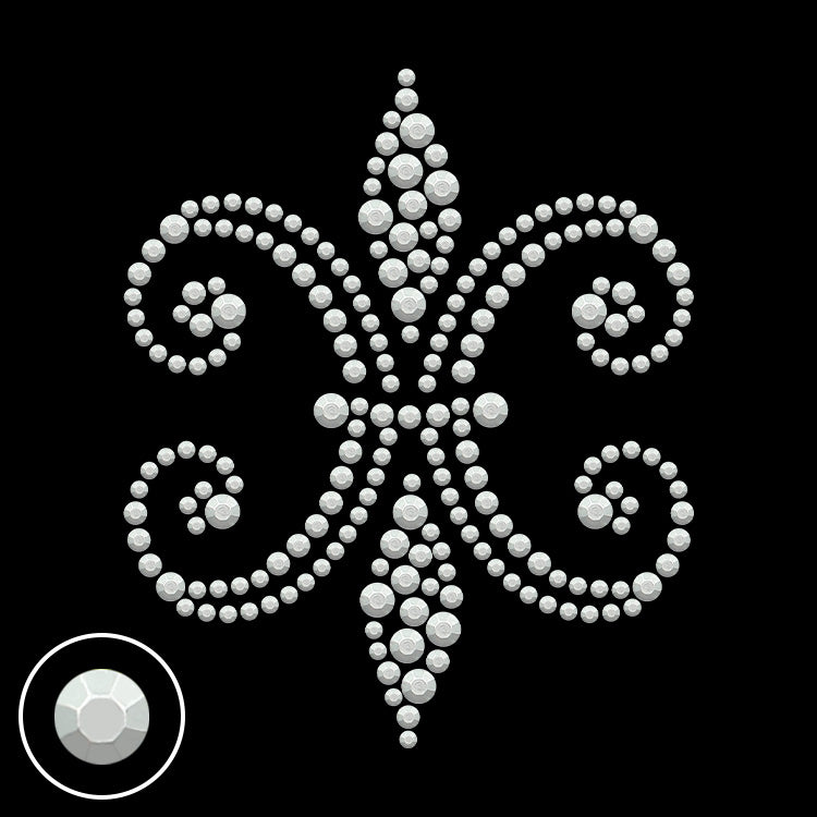 Rhinestud transfer is one of our hotfix transfers solutions. It's a custom ready to press heat transfer made of hot fix style rhinestud.
