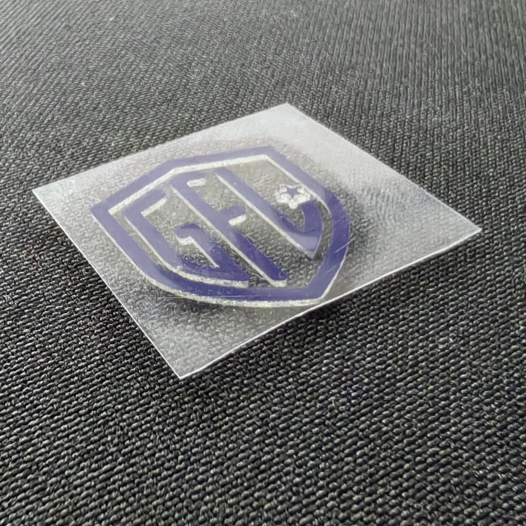 Suitable for multi-color and detailed designs or logos, 1-7 colors, thin and crisp outlines, thickness 0.3mm/0.5mm, customizable matte, glossy, size, colors and shape.
