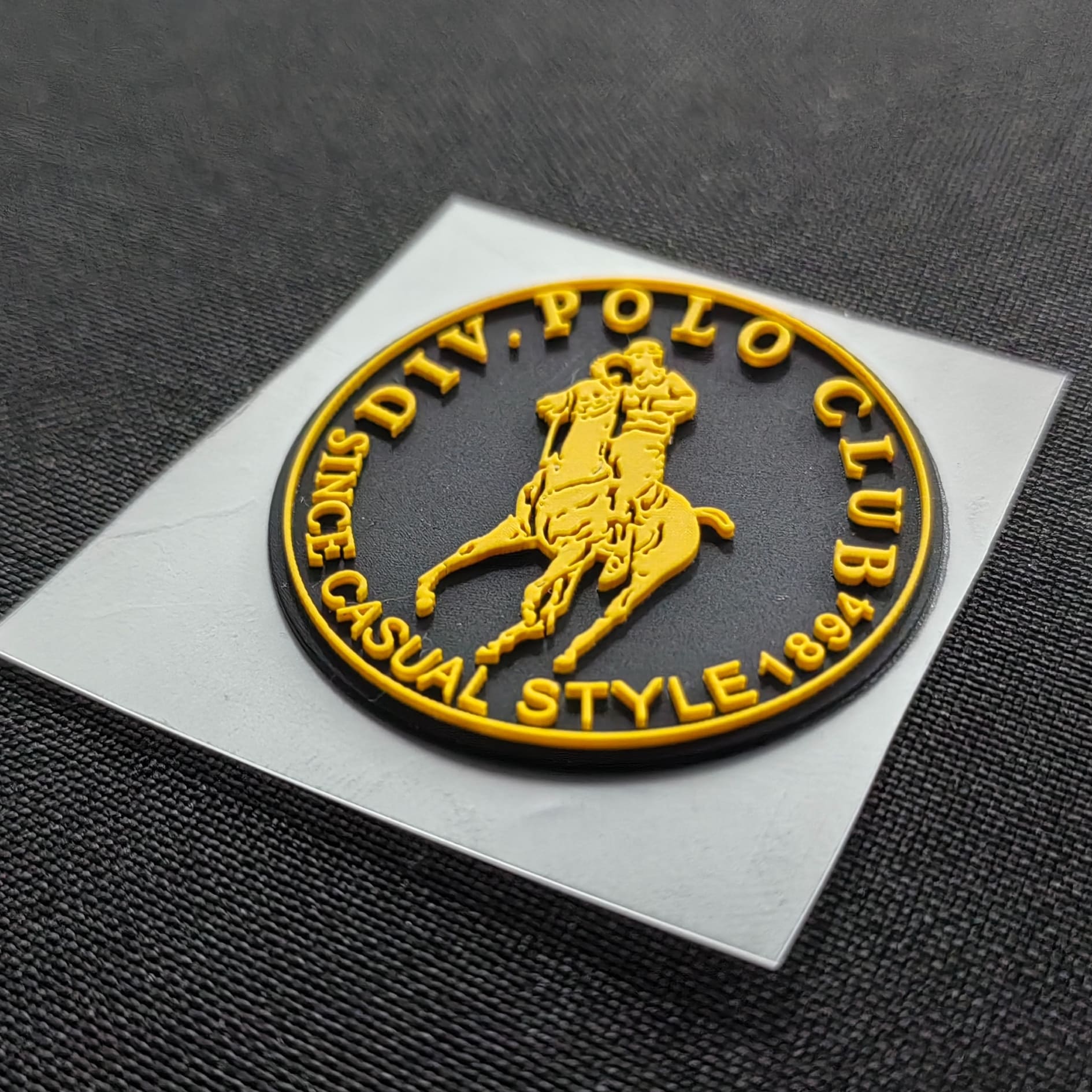 Suitable for simple design or logos,durable and economical, with background, detail slightly raised, 1-2 colors, thickness 0.8mm, customizable size, color and shape.