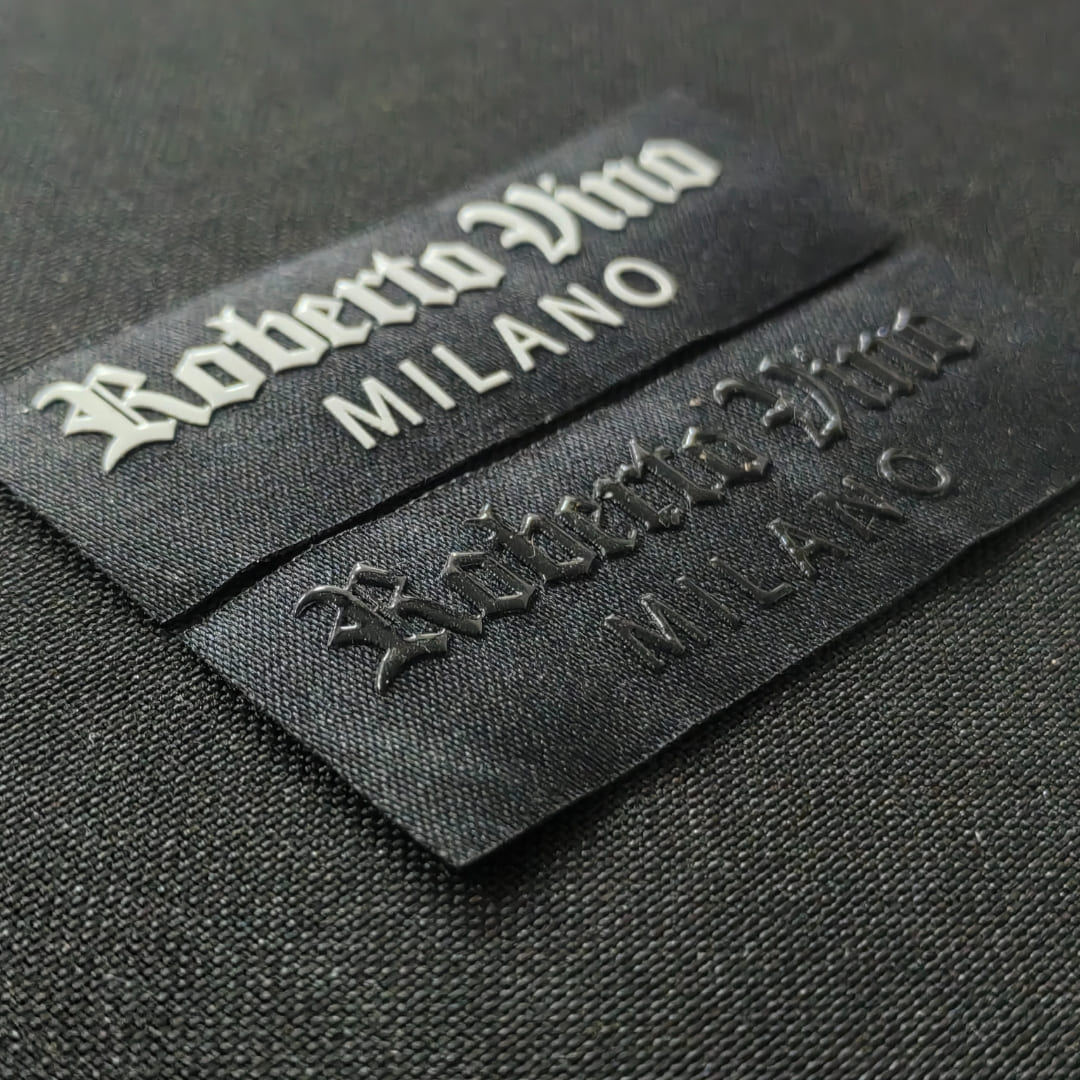 Soft screen printing tagless label, 1-7 colors, , thickness 0.3mm/0.5mm, customizable matte, glossy, size, colors and shape.